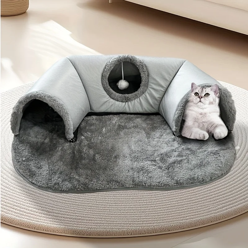 3-in-1 Cozy Cat Tunnel Bed Play Mat Warm Nest With Non-Slip Bottom for Small to Medium Cats dog Rabbits Home Pet Kennel Products