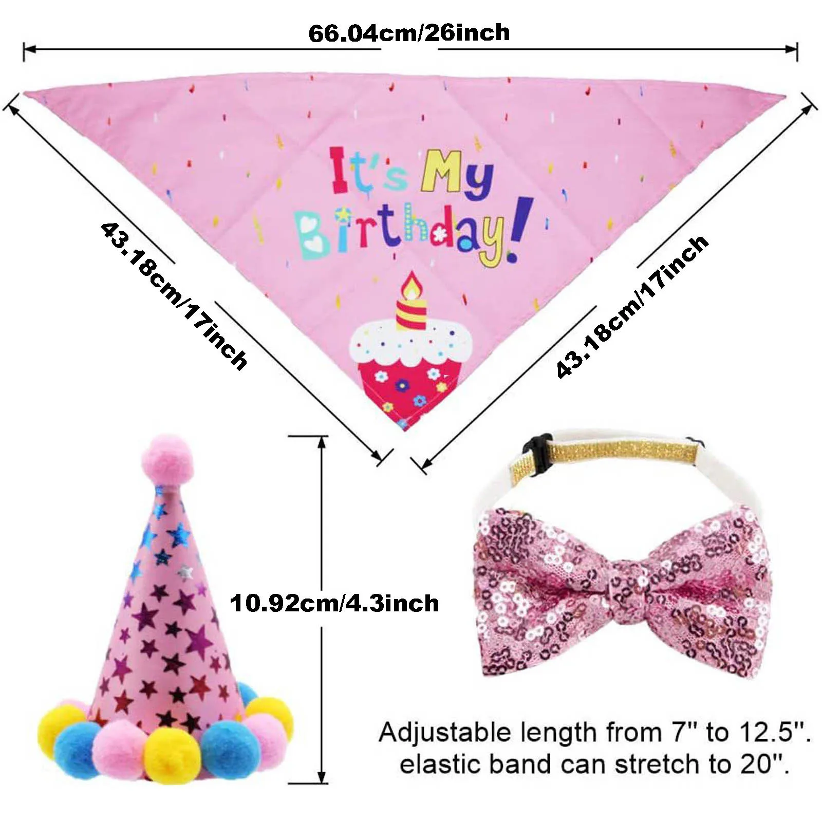 Dog Birthday Bandana Scarf And Dog Girl Boy Birthday Party Hat With Cute Dog Bow Tie For Small Dog Pet