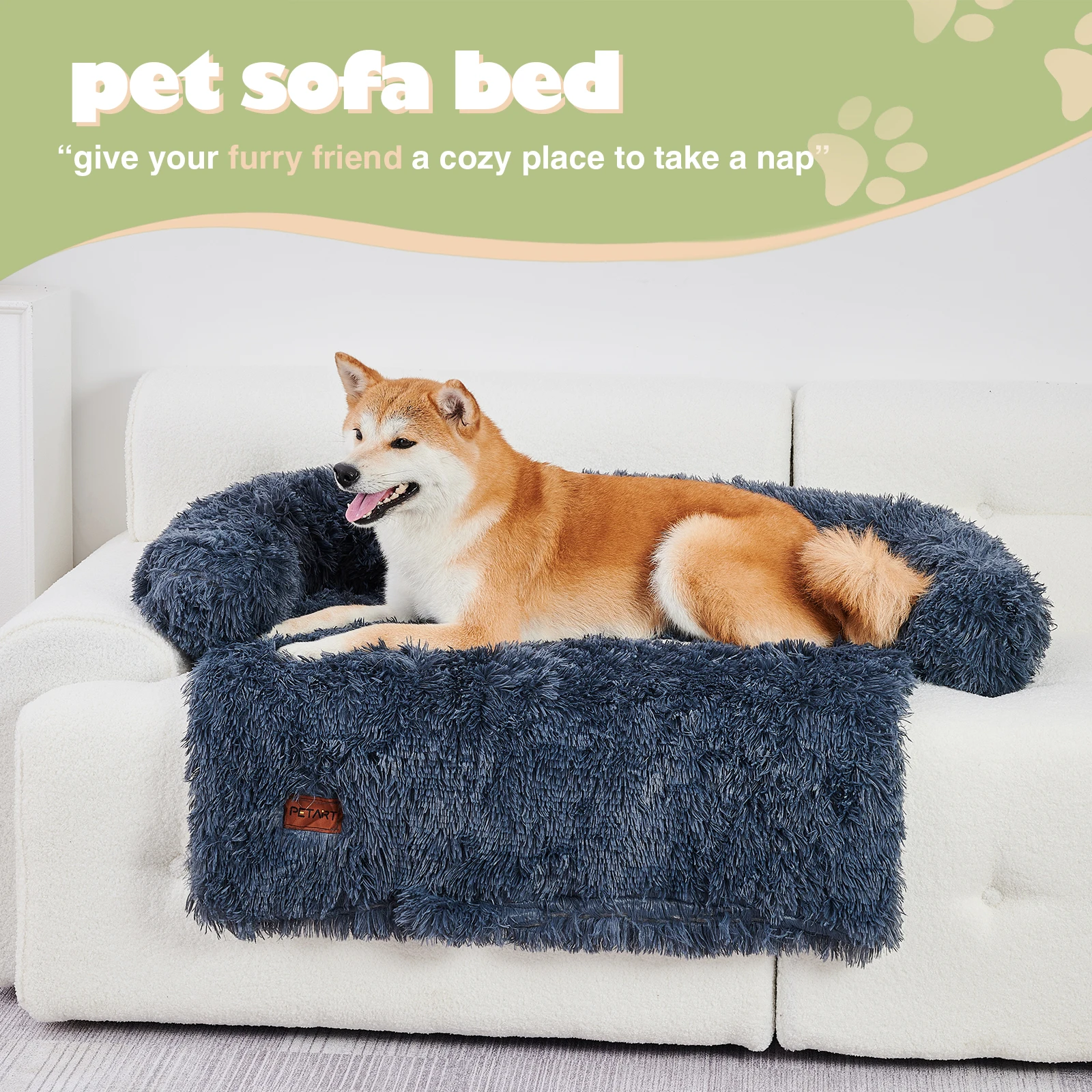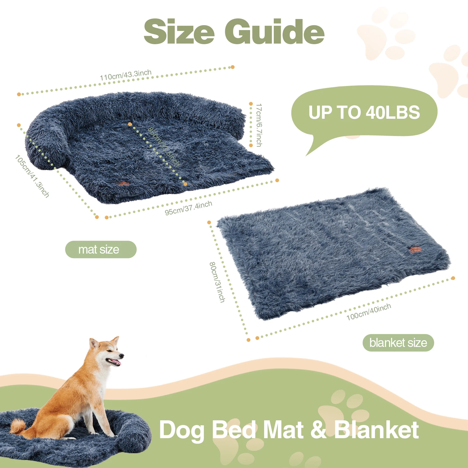 Dog Couch Bed Mat Fluffy Plush Dog Sofa Bed with Blanket, Pet Protector with Removable Washable Cover for Medium and Large Dogs