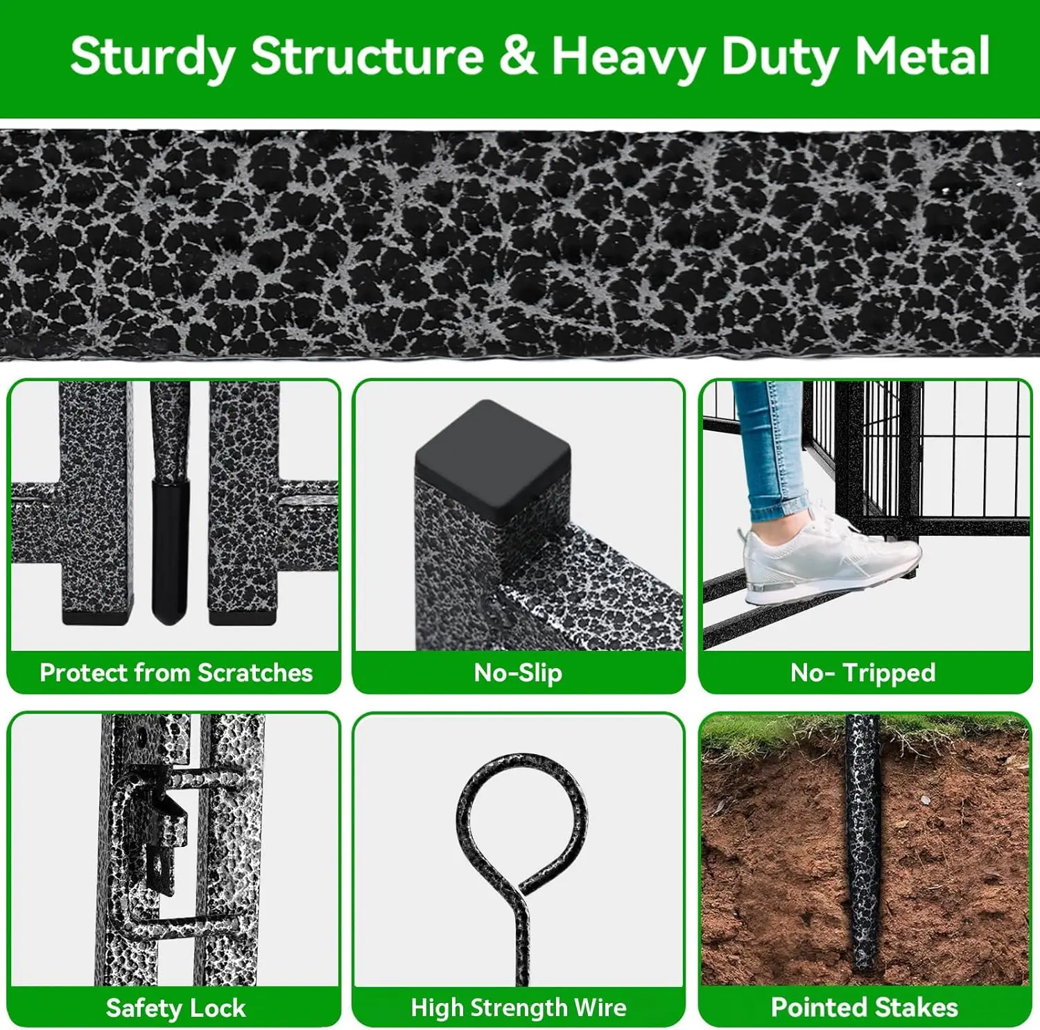 【Anti-Rust Coatings Material】The puppy playpen made of heavy-duty metal, sturdy and durable, steel wire smooth and solid, pet dogs couldn’t damage or chew it, anti-corrosion coatings and rust-proof process helps panels works well outdoor and extend its life, the indoor and outdoor dog pen great for people with dogs 【Safe Enclosed & Expandable Area】The heavy-duty dog pen is sturdy and durable, pet fence provides a safe enclosed area for your pups play, run around and get the exercise they need, each panel is separate, which can be combined repeatedly for larger square footage, this temp fencing makes potty and house training much easier 【Easy to Set Up & Multiple Combinations】The panels come with individual poles to connect them together, easy to set up or take it down in minutes, dog fence can do multiple combinations and configurations, dog playpen for the yard easily conforms to different shapes according to your garden or room, circle, polygon, irregular, etc 【Portable Foldable & Storage Transport】The pet dog fence folds up flat for easy storage and transportation, this foldable pet fence is a great idea for your travel, camping, Rving or for the park and yard, your puppy will very happy to be off the leash, and you need not worry your dog will pull out of the harness 【Sturdy Structure & Stable Ground Stakes】The metal stakes are designed round top, which can be pounded into the ground for greater stability, this dog fence with sturdy structure, so dogs can’t knock it down and keep them confined in a safe area, the pet pen works great for small, medium and large dogs and rabbits, ducks, turtles etc