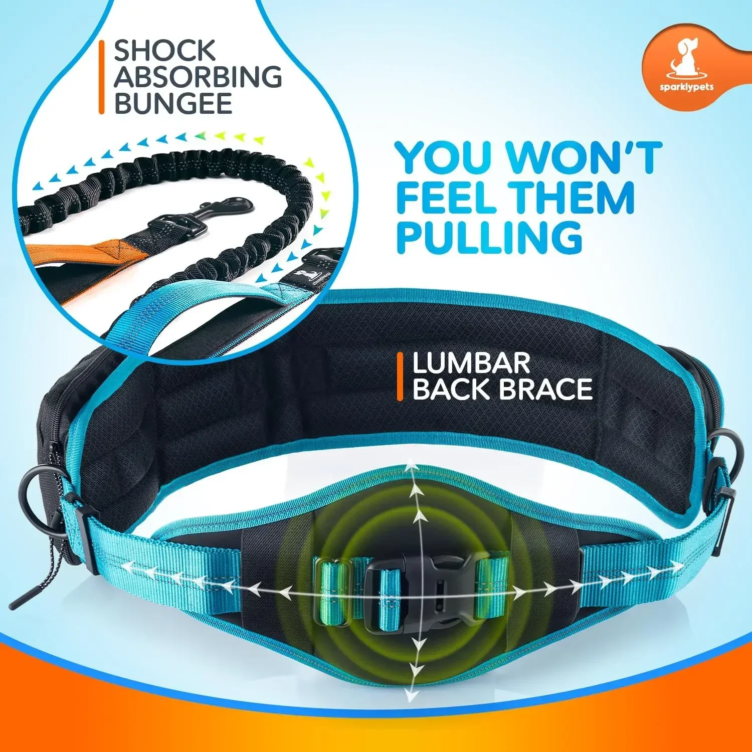 SparklyPets Double Bungee Waist Dog Leash with Back Brace – Dual Dog Leash for Medium/Large Breeds – 2 Dog Running